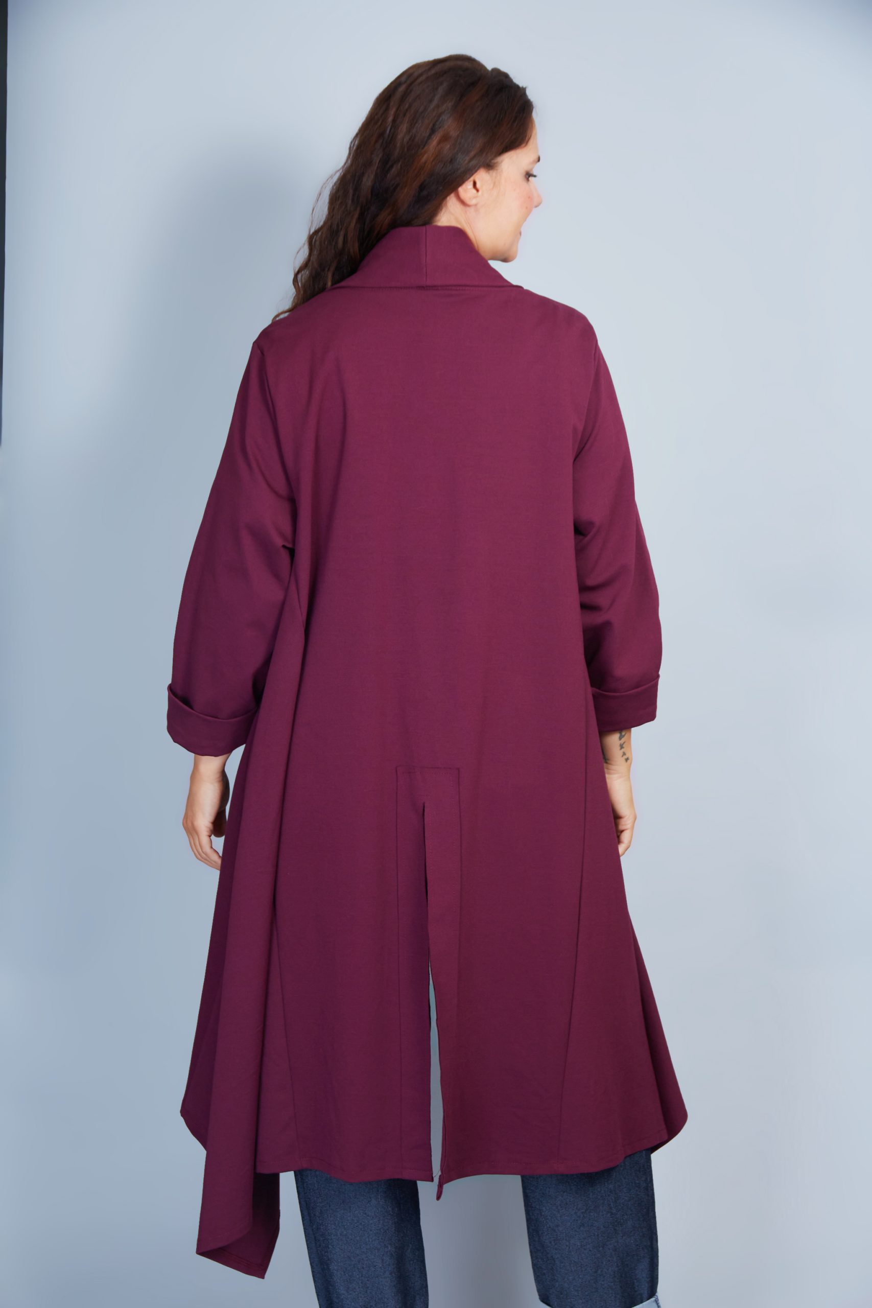 Chaqueta larga cuello chal, sin cierre. Puntas frontales más largas. Bolsillos frontales. Ajuste muy cómodo.