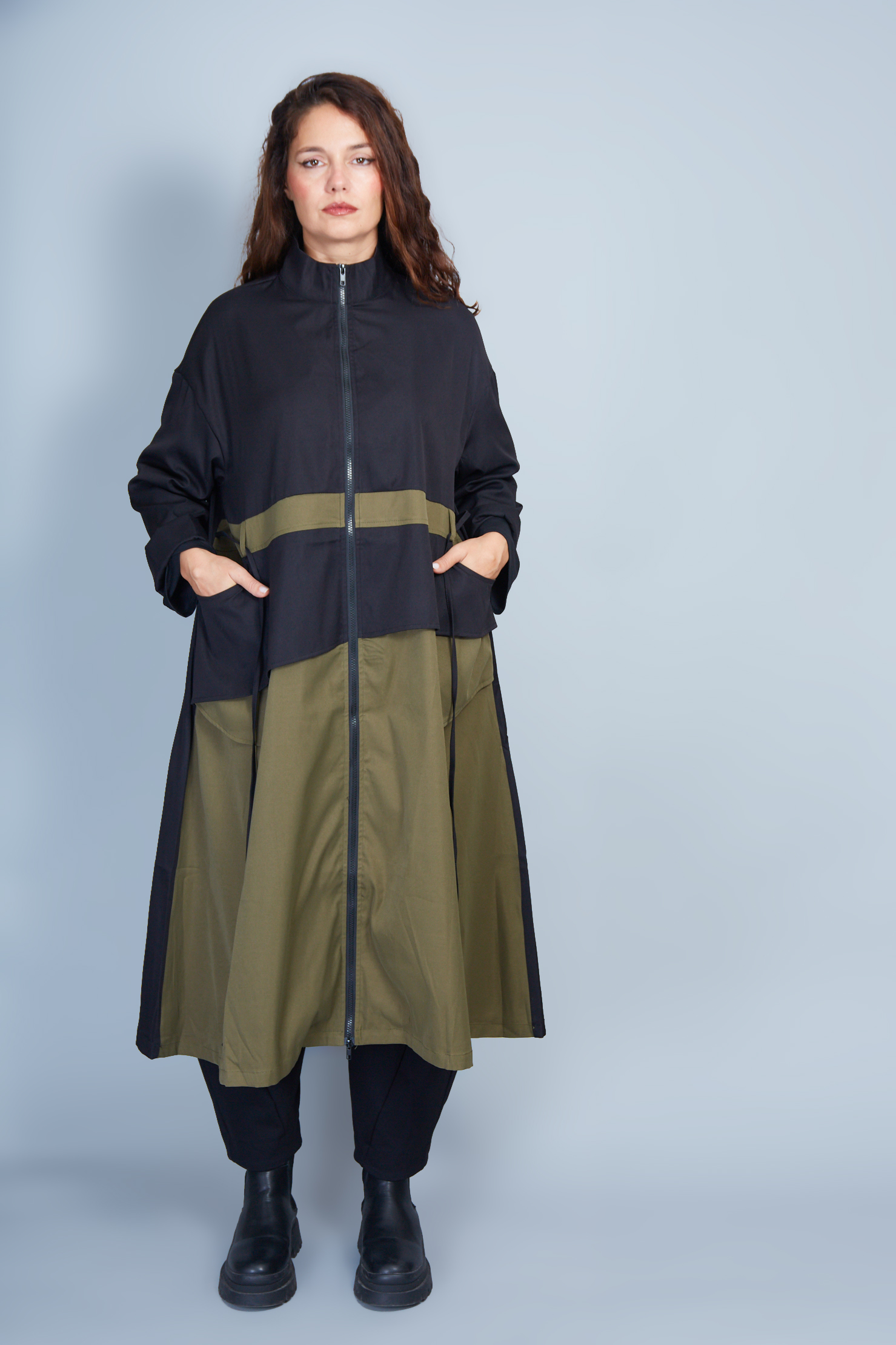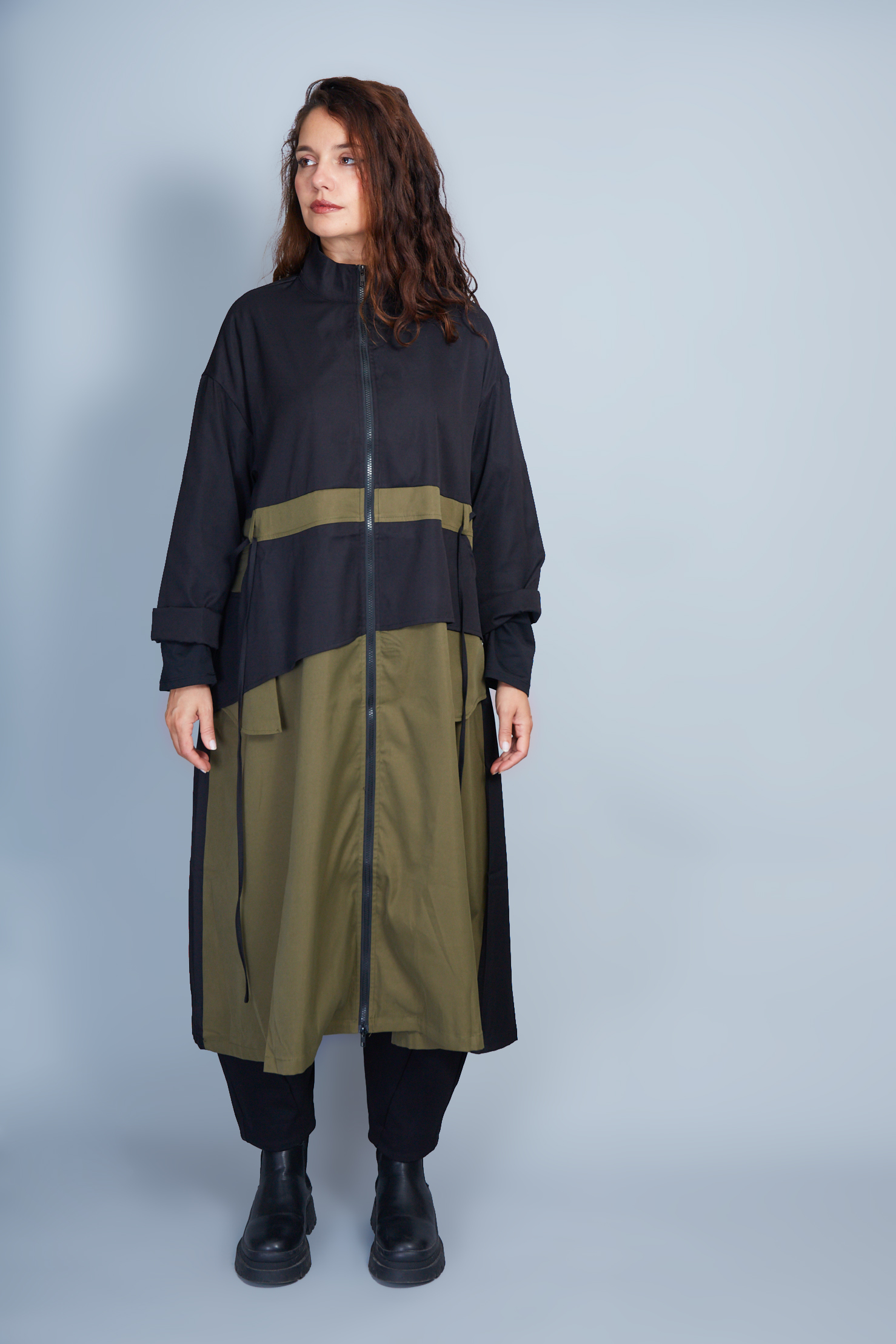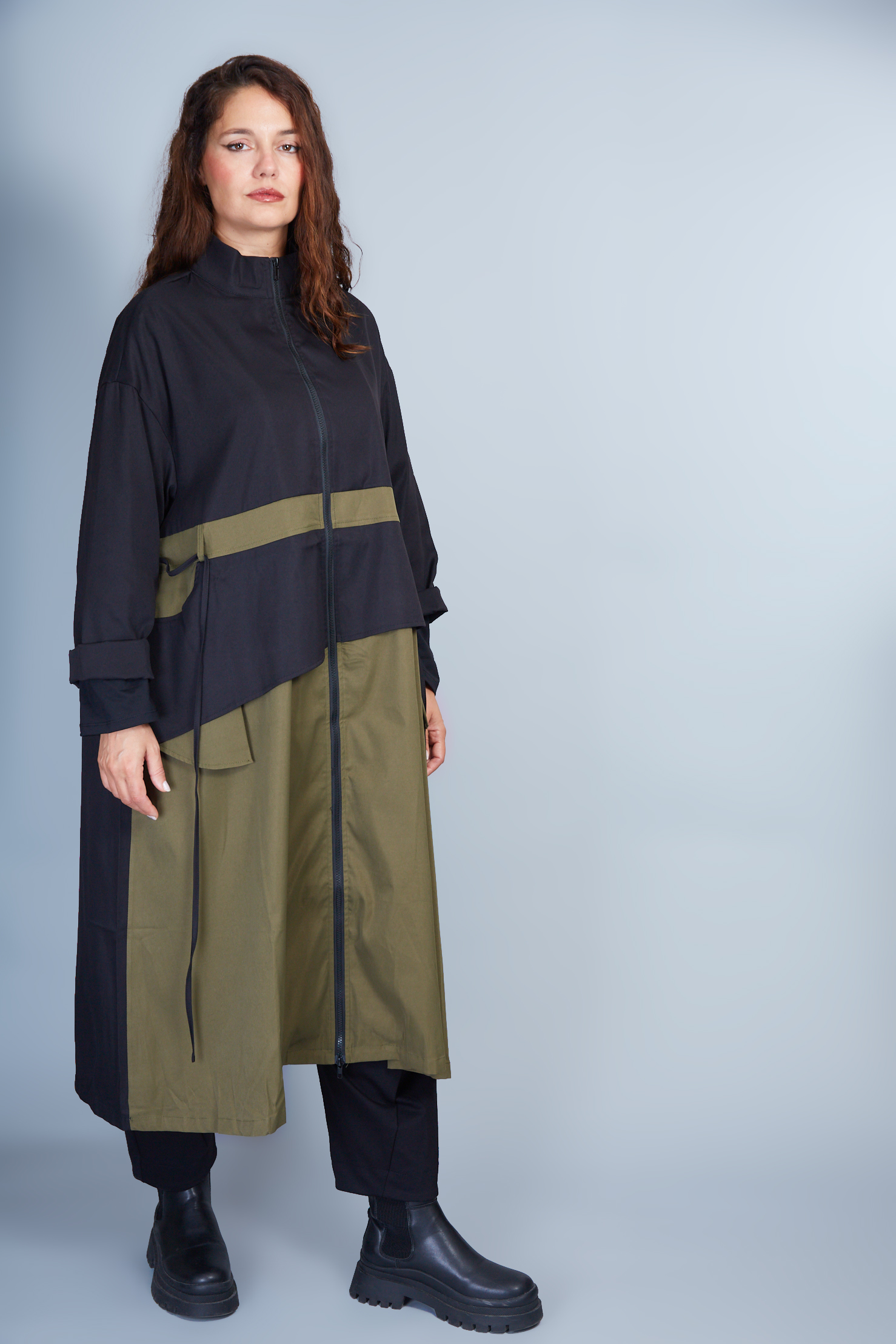 Gabardina larga ligera. Cierre con cremallera. Bolsillos frontales. Ajuste cómodo.