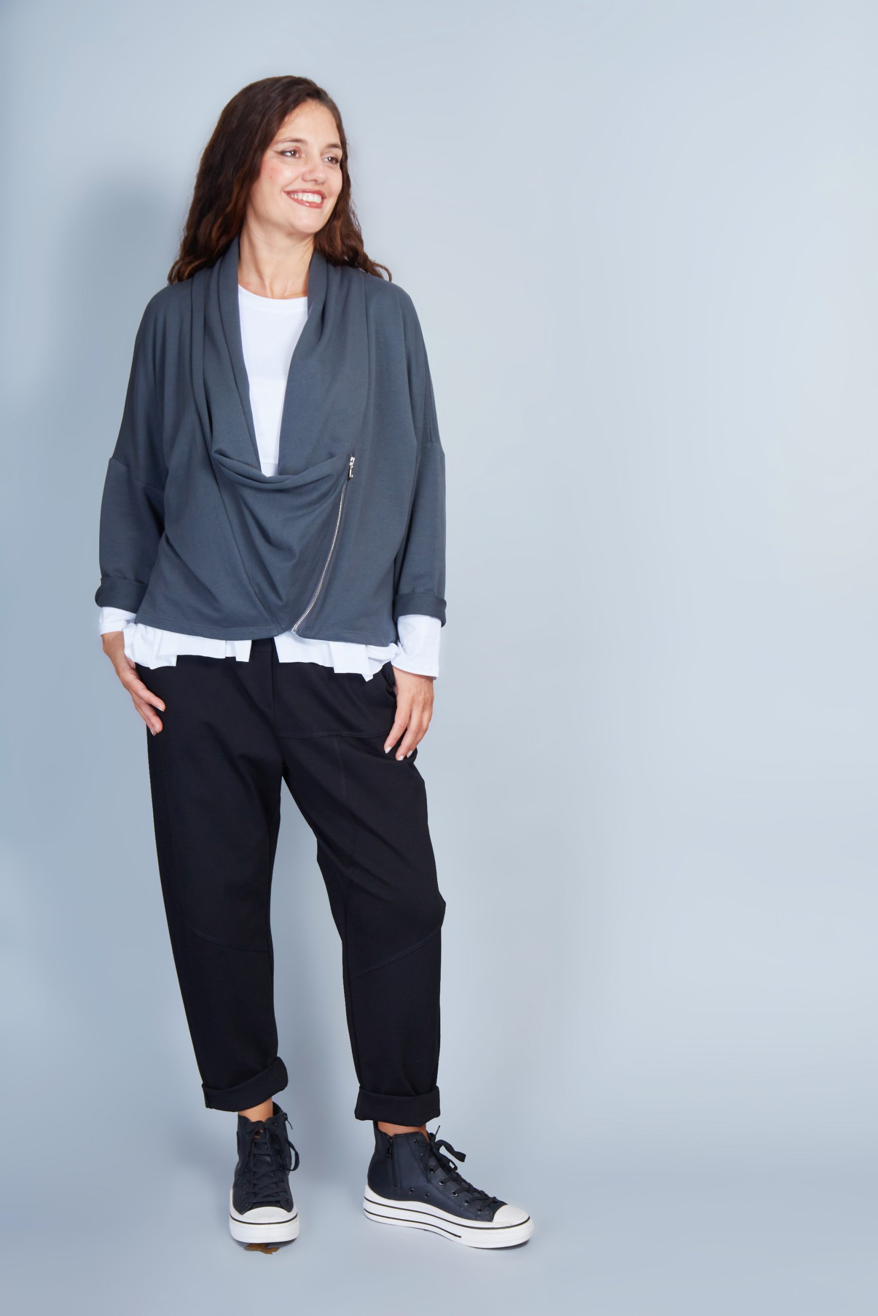 Chaqueta cuello chal. Cierre con cremallera. Ajuste cómodo.