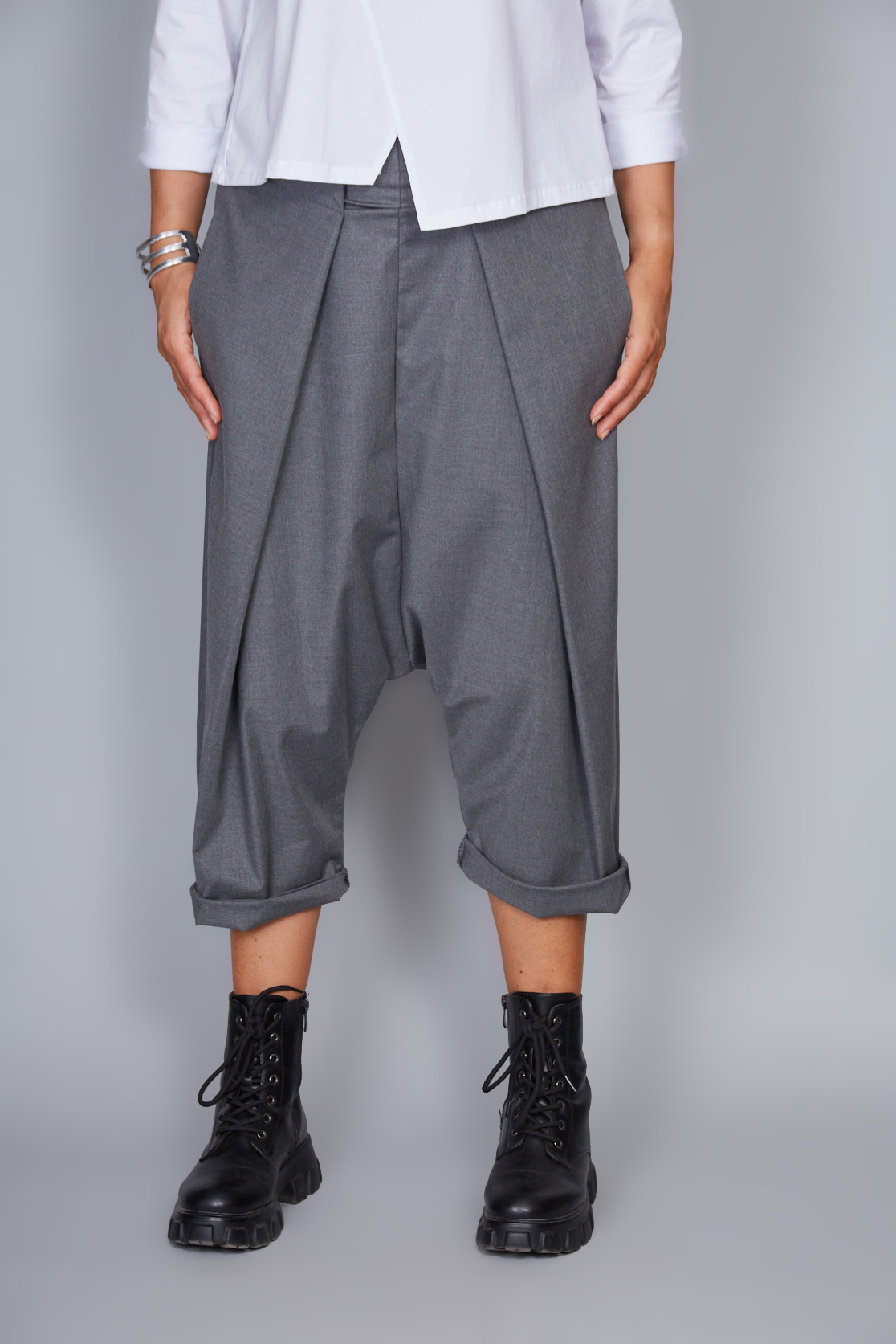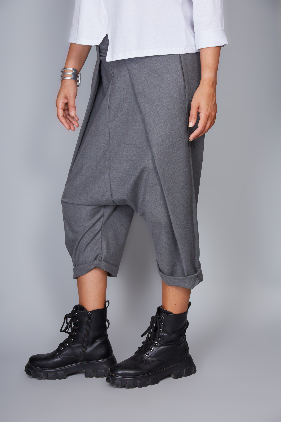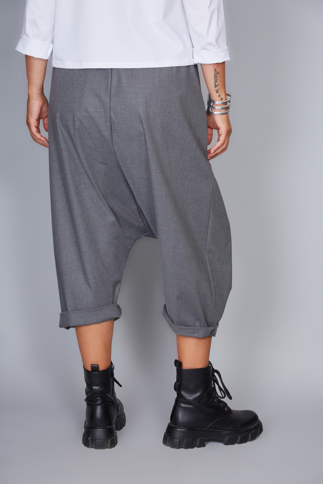 Pantalón con cintura elástica. Entrepierna muy baja. Bolsillos laterales. Ajuste bastante cómodo.