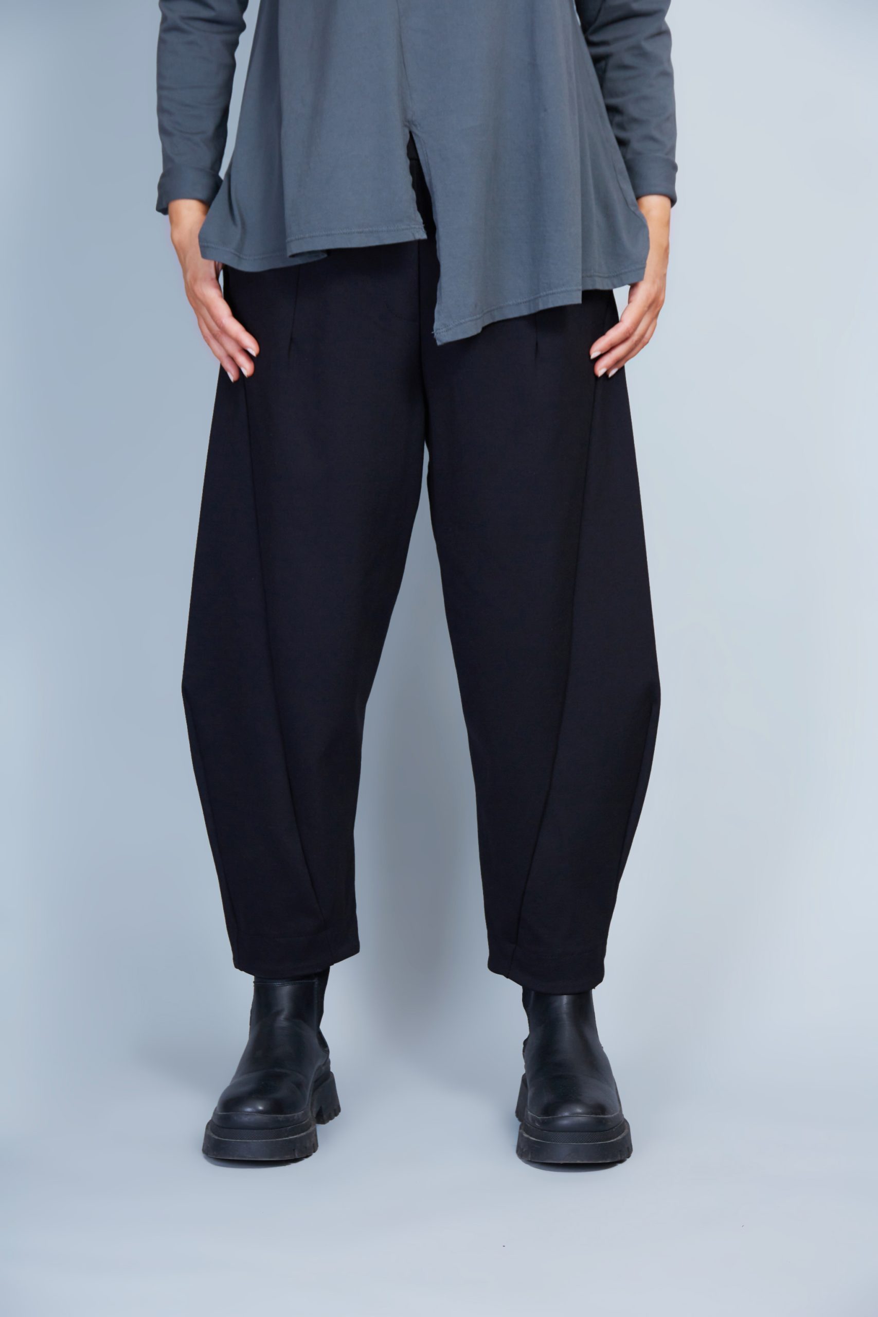 Pantalón punto Roma con cintura elástica. Bolsillos laterales ocultos. Ajuste suave.