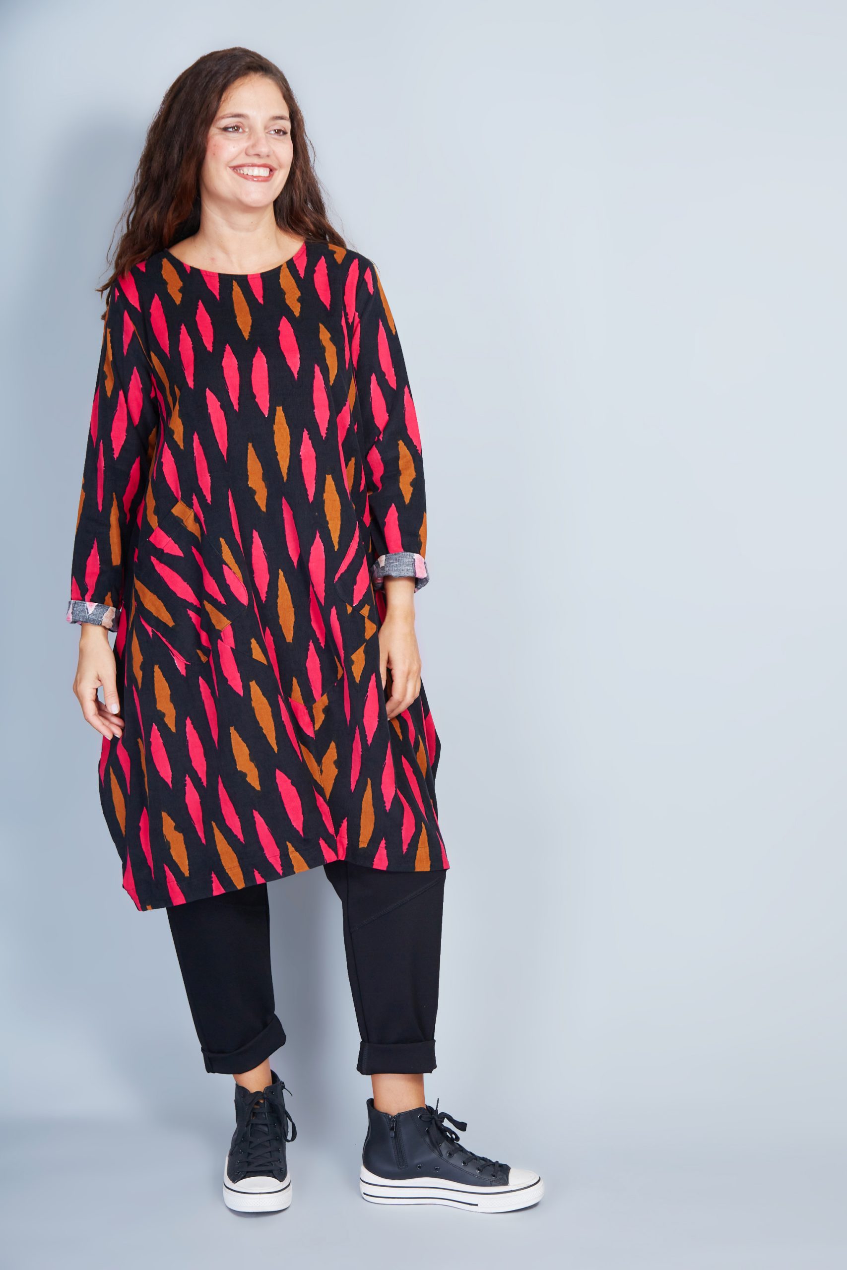 Vestido en micro pana. Escote redondo. Bolsillos frontales. Corte ovalado. Hombros regulares y mangas largas. Ajuste cómodo.