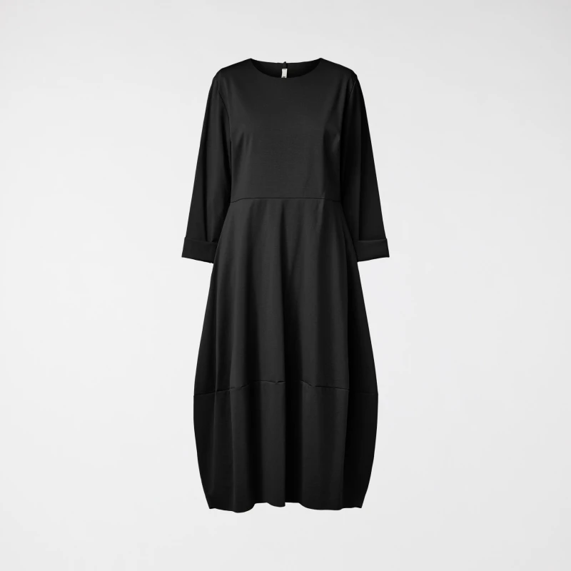 Vestido en punto milano. Escote redondo. Bolsillos laterales ocultos. Corte de huevo. Hombros regulares y mangas largas. Ajuste cómodo.