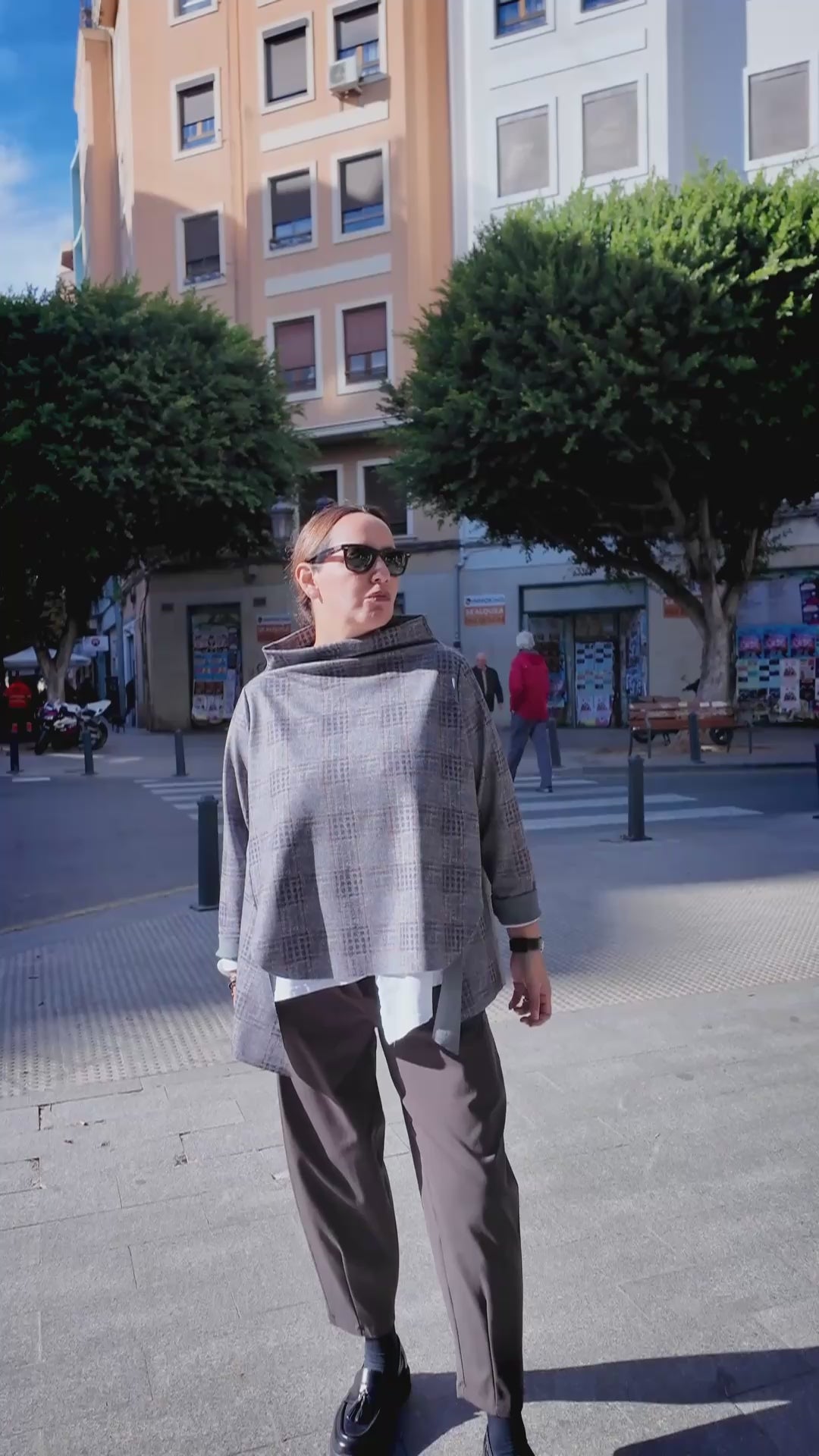 Blusa de cuadros con cuello subido y manga larga. Corte acampanado. Espalda más larga. Ajuste suave y cómodo.